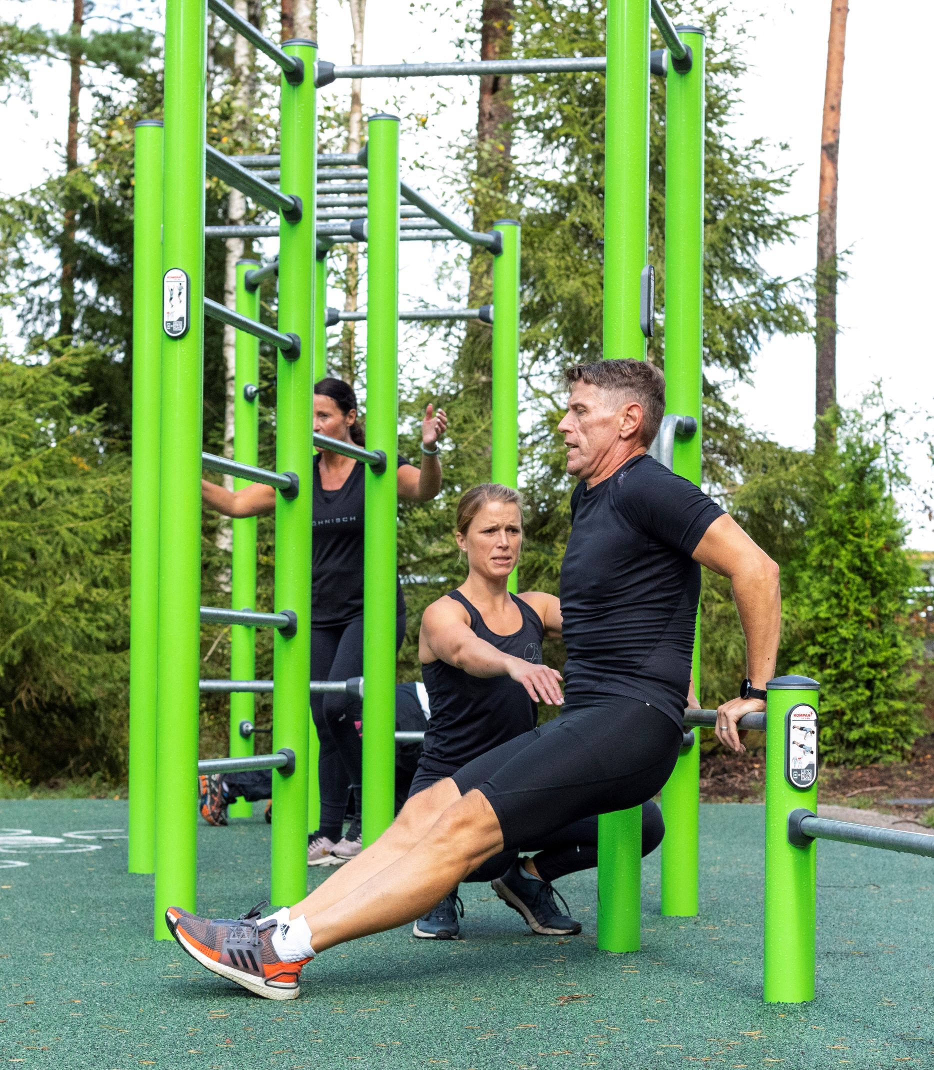 Både för dem som inte har tränat alls och för dem som har tränat och vill utvecklas vidare finns hjälp att få. Alla redskap är utrustade med en QR-kod och instruktionsfilmer där man lätt kan gå in via en app och välja sitt redskap. Där får man tips hur man ska göra och vilka muskelgrupper man använder.